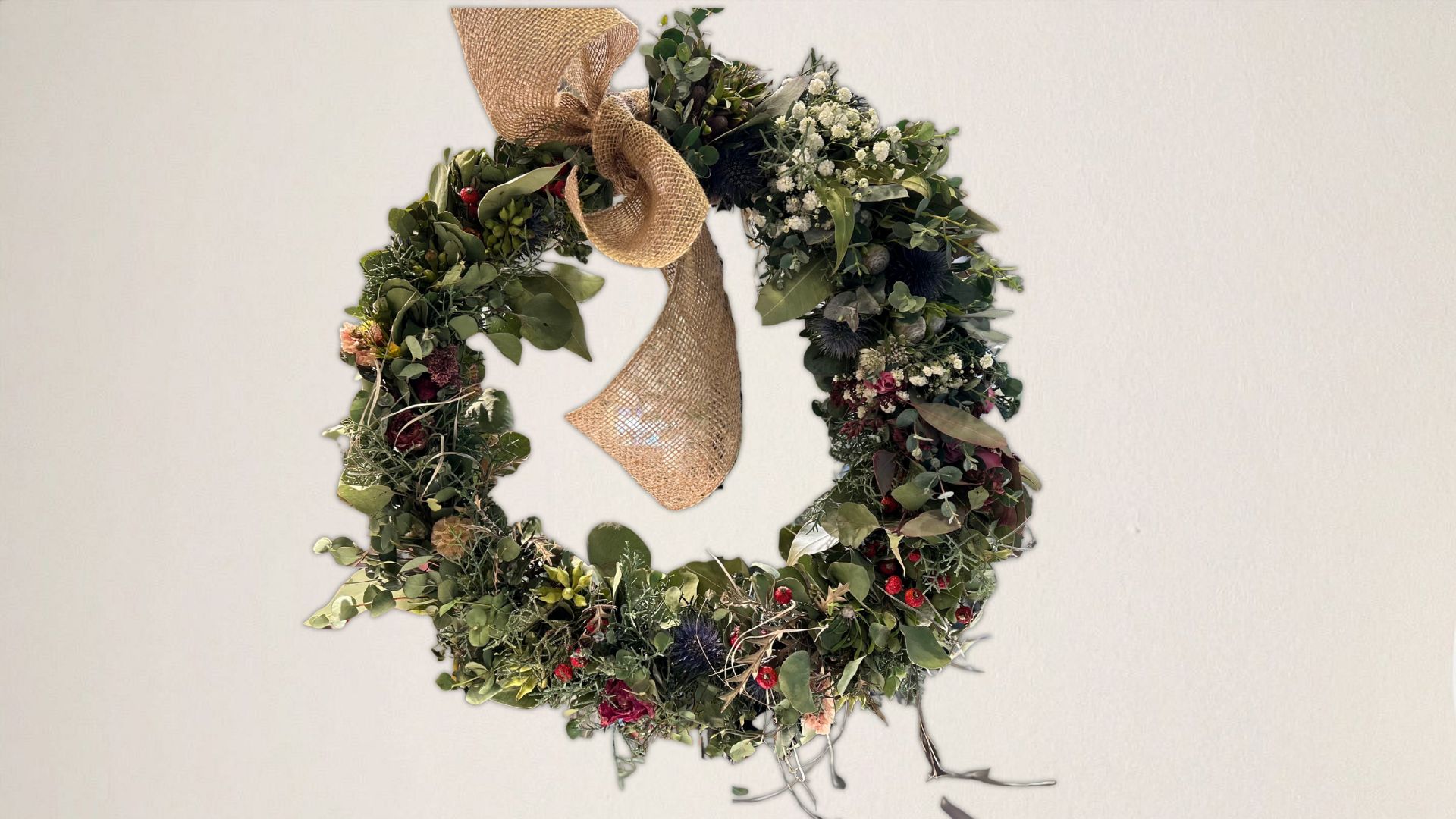 季節のグリーンやお花を束ねていくだけで、驚くほど素敵な壁飾りが完成します。「不器用だから…」という方も、綺麗に仕上がるコツを丁寧にお伝えするのでご安心ください。